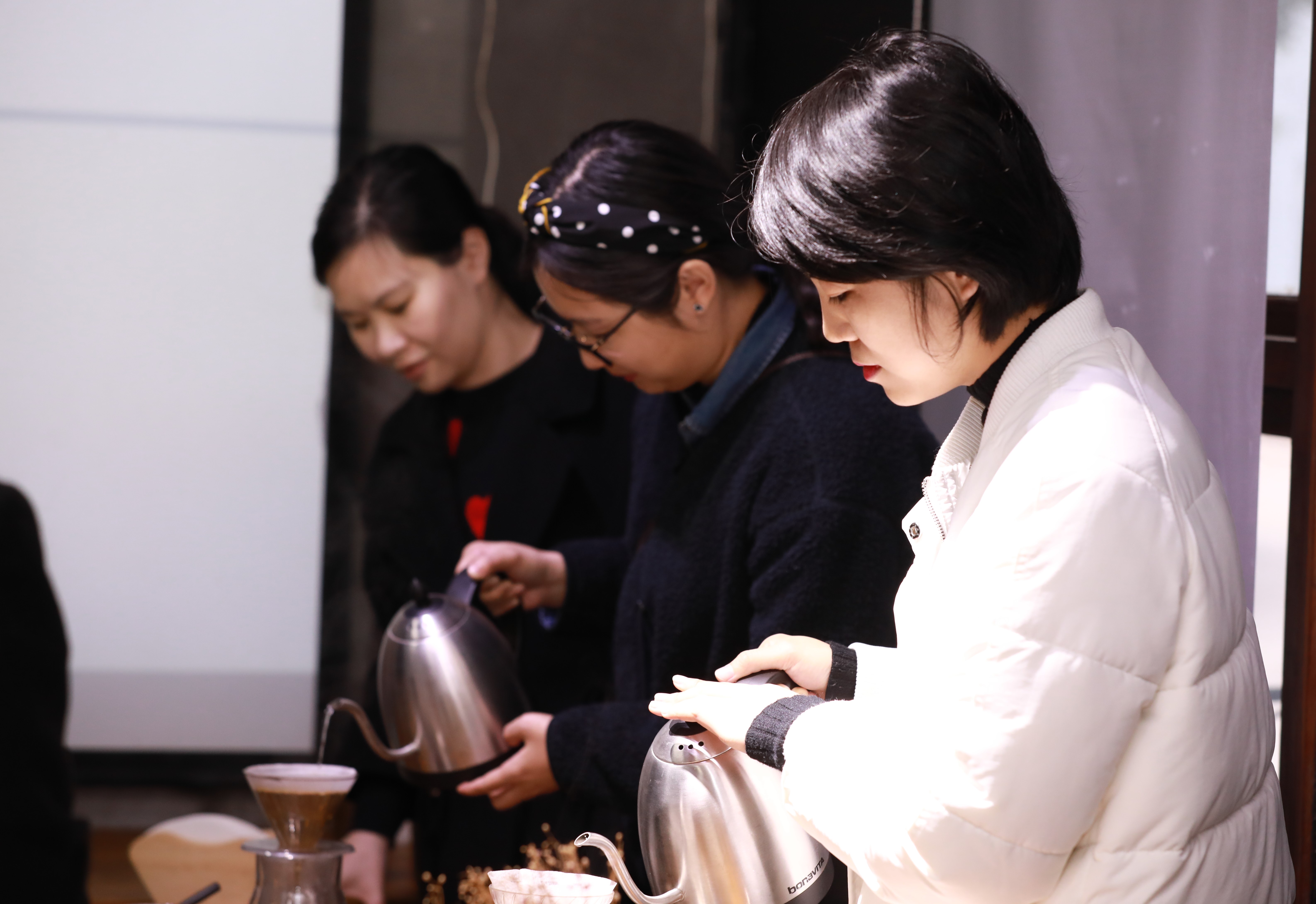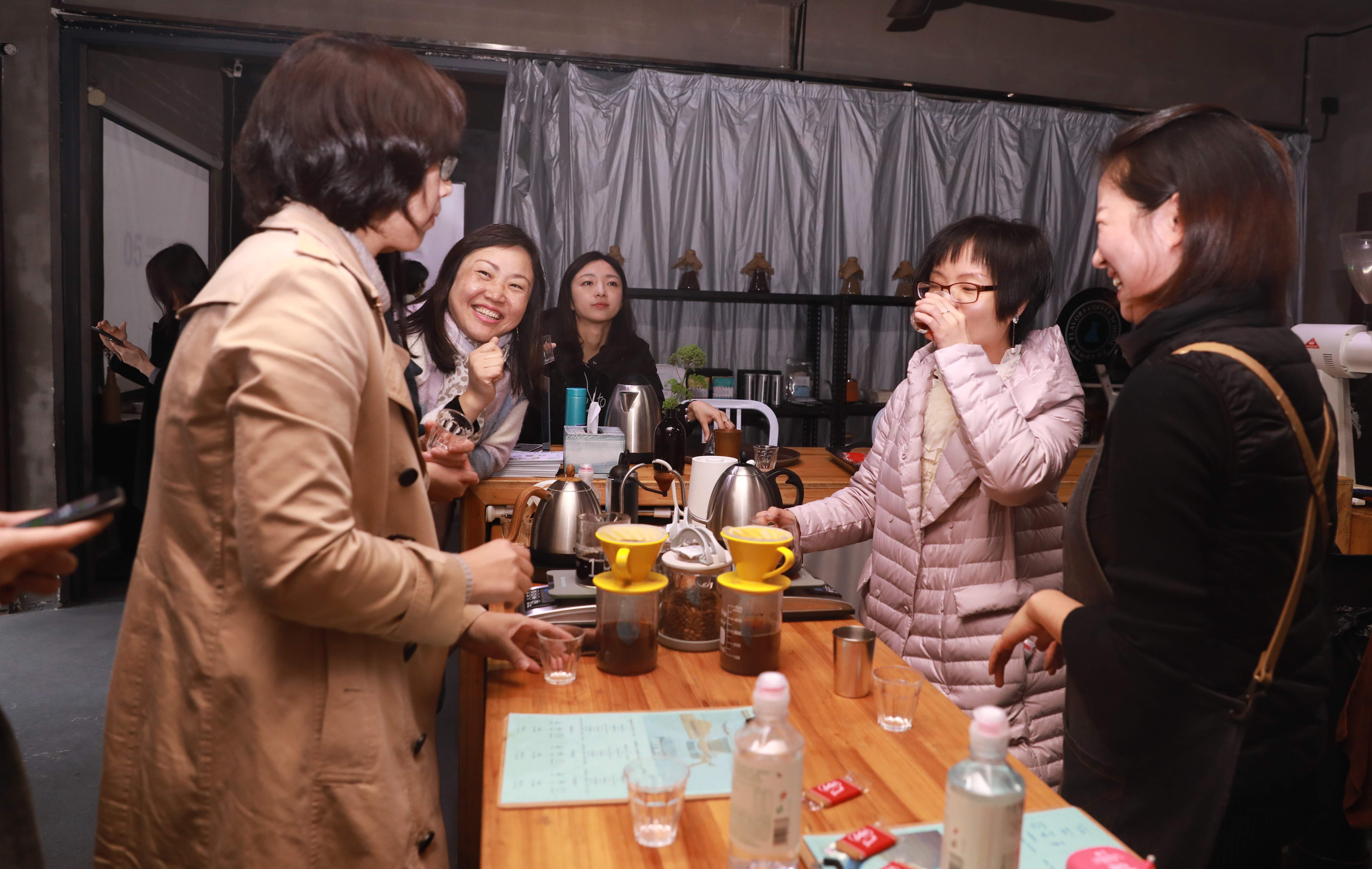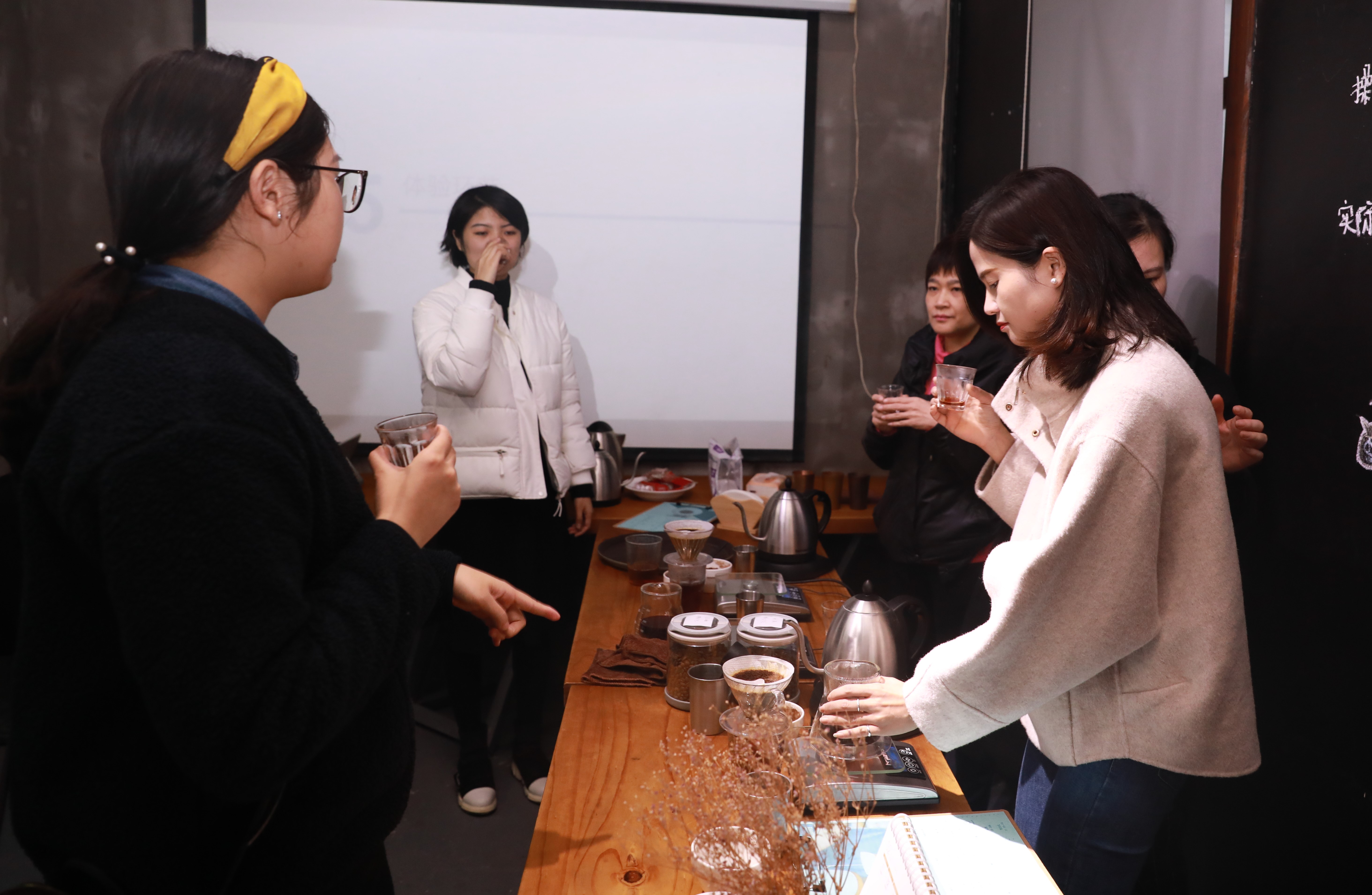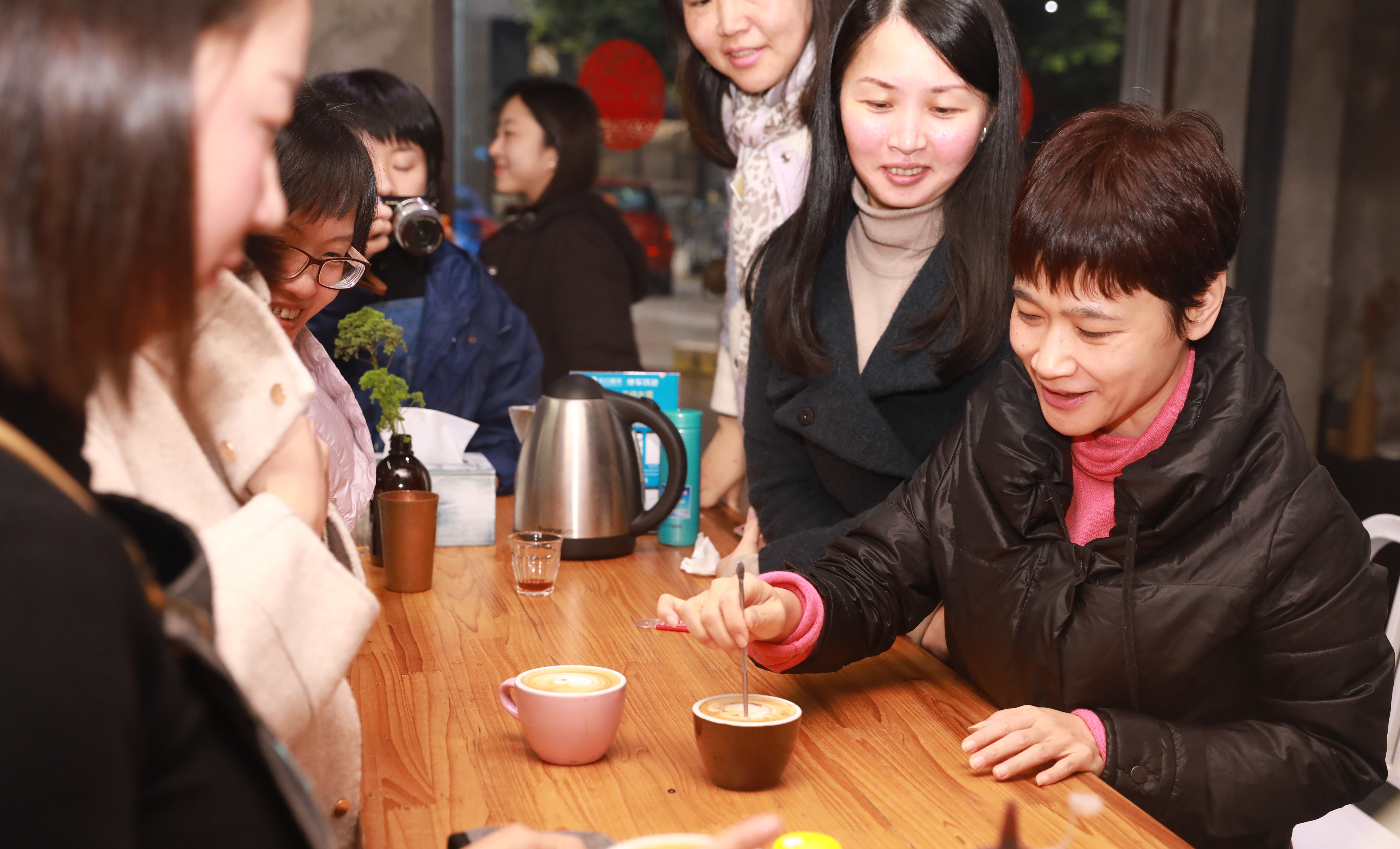 “东风随春归,发我枝上花”。在这个春雨延绵的季节,我们迎来了第109个“三八”国际劳动妇女节。为了丰富集团女职工的业余文化生活,让全体女职工度过一个温馨、愉悦、难忘而有意义的节日,集团工会女工委于3月8日下午组织了“春光烂漫·感受醇香”咖啡品鉴活动。集团本部的女职工参加了活动。 在凑味咖啡学院里,有着SCA世界精品咖啡认证考官与教育官、世界咖啡师大赛中国区认证评委的陈耀星老师首先为大家讲解了咖啡的基础知识,并现场演绎了手冲咖啡的操作步骤,现场品鉴了一支名为“瑰夏”的咖啡。随后,在教学团队的细心指导下,现场女职工一一动手体验冲煮咖啡,并现场体验雕花环节。“哇,原来拉花还这么有学问啊!”,“真的好有意思,同样的豆子,我们冲泡的味道确不一样也,我的较酸,你的会回甘也!”,“雕花不好掌控啊,看我雕的‘蜘蛛网’很美吧”。体验环节有趣又惬意,大家一边动手一边相互交流,并开心地拍照留恋。