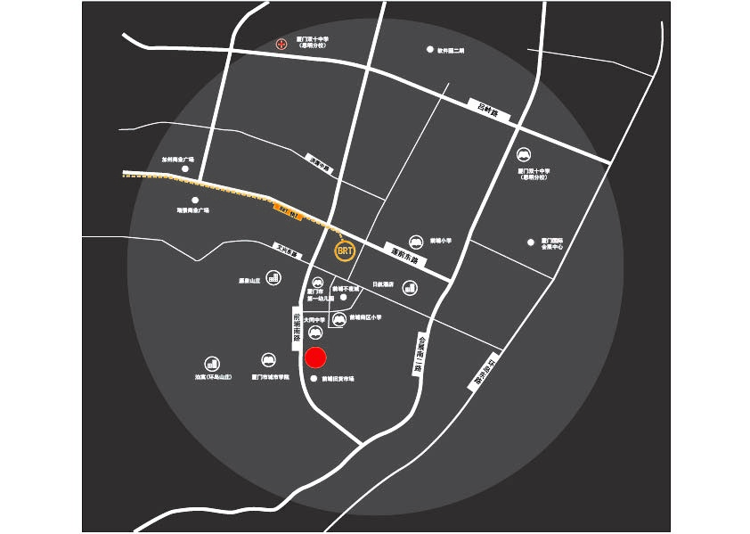 (3)交通通达性强:坐落于环湖里大道东侧, 厦门城市职业学院体育馆北侧。距离BRT前埔枢纽站1公里,七条公交线路经停周边;邻近环岛干道会展路段,可快速到达厦门岛内外任何区域。