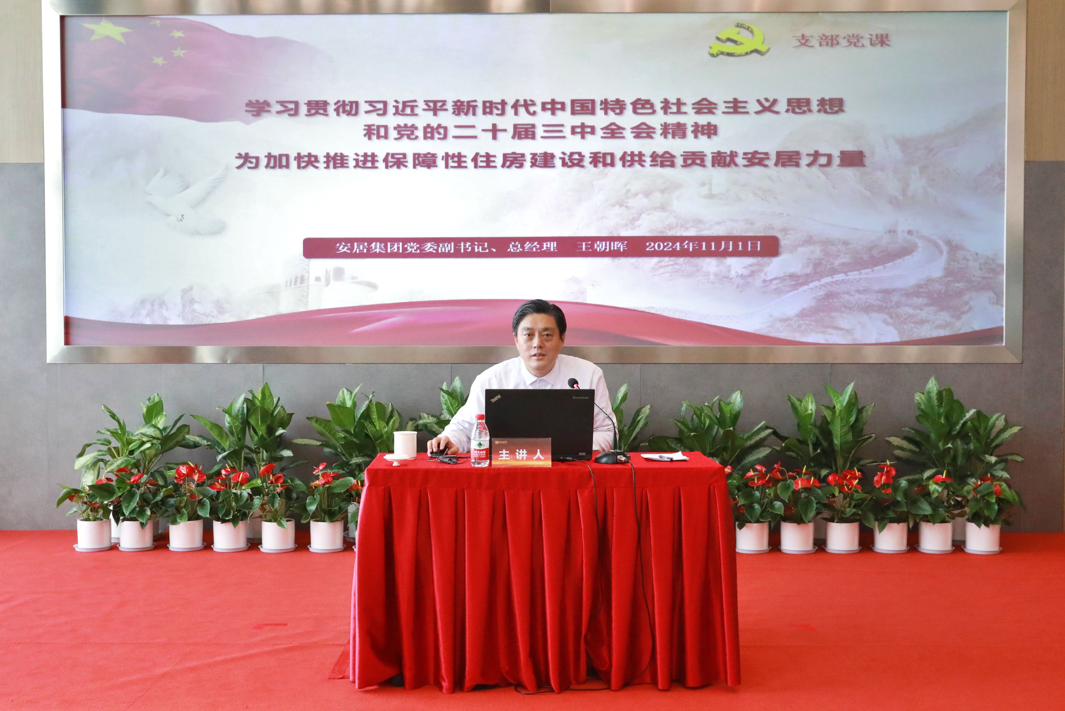 11月1日,成人漫画 控股集团党委委员、成人漫画 党委副书记、总经理王朝晖在801会议室以“学习贯彻习近平新时代中国特色社会主义思想和党的二十届三中全会精神 为加快推进保障性住房建设和供给贡献成人漫画 力量”为题,为集团党员干部上专题党课。成人漫画 直属一支、直属二支全体党员、入党积极分子和各直属企业党支部党员代表参加学习。