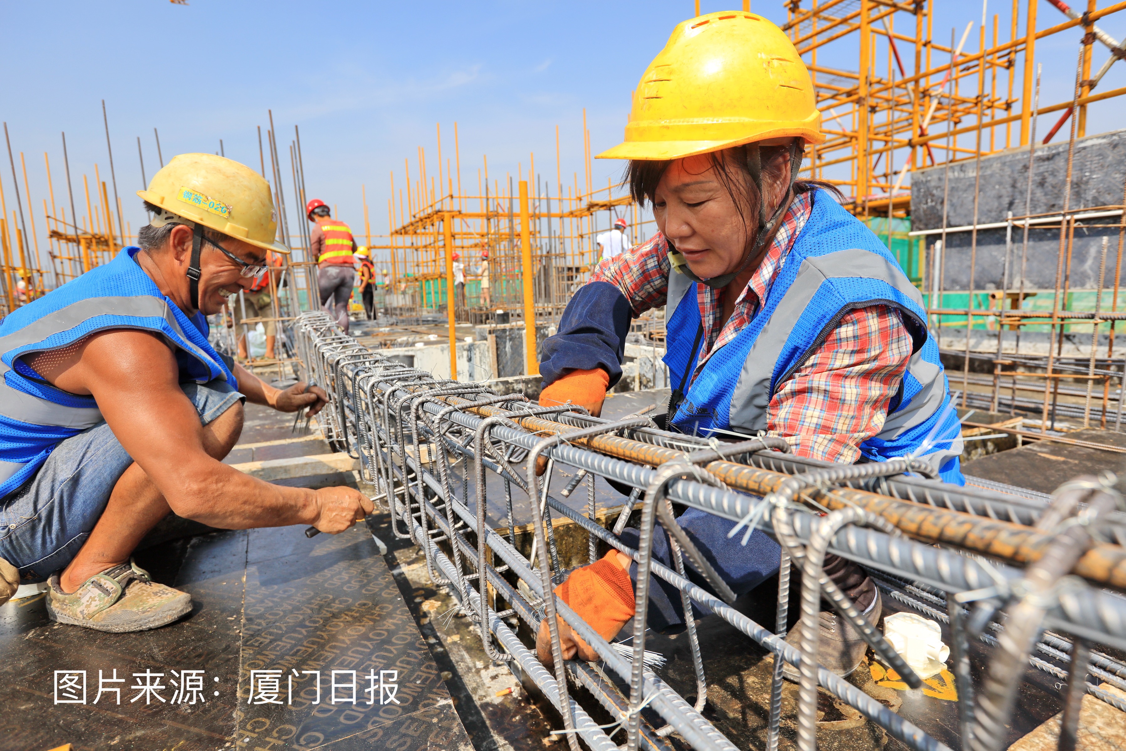 上午九点,马銮湾保障房地铁社区一期工程工地,空气中涌动着滚滚热浪,但施工现场依然热火朝天——500多名室外作业工人顶着炎炎烈日,奋战在城市建设、保障房建设的第一线。 目前,马銮湾保障房地铁社区一期主楼最高已施工至15层,平均五天就盖起一层楼。记者跟随代建方、施工方爬至最高楼顶楼,施工现场气温犹如蒸笼, 20多名工人正在高温炙烤下绑扎钢筋,每个人脸上都不断滴下汗珠、后背已经湿透。